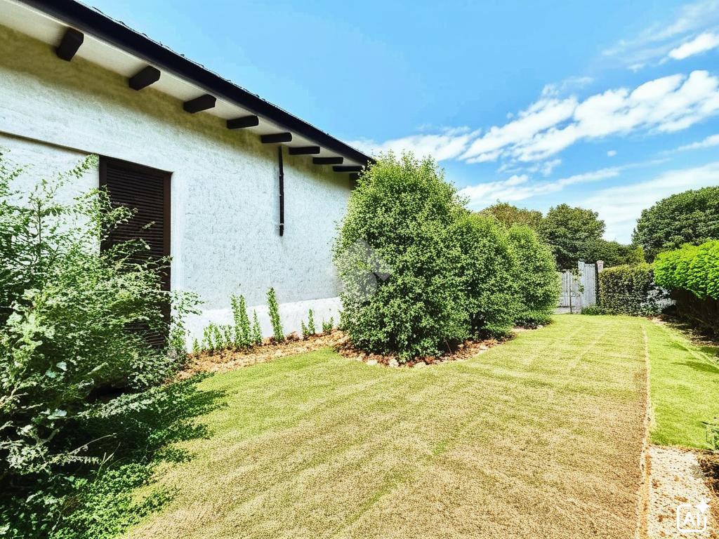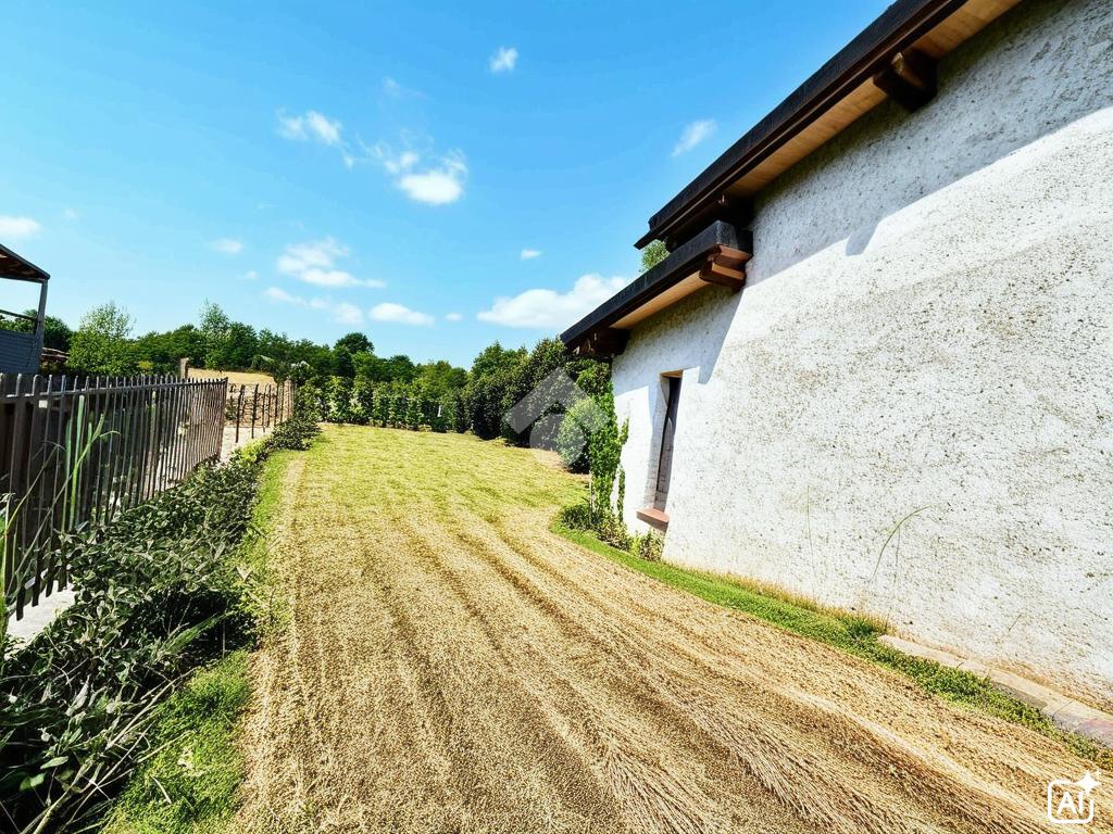 Esternamente, l'abitazione può essere rifinita con facciata in stile contemporaneo, abbinando intonaco chiaro, inserti in legno e serramenti moderni a taglio termico. Il giardino circostante permette la realizzazione di una zona barbecue, un portico vivibile, oppure un pergolato in legno che completi lo spazio outdoor.