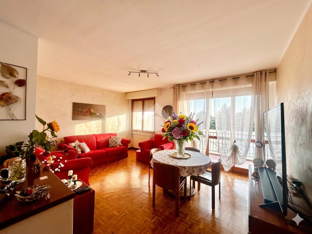 L'ingresso, tramite porta blindata, si apre su un corridoio che conduce sulla destra alla cucina abitabile e prosegue verso il luminoso soggiorno a vista, con accesso a un ampio balcone.